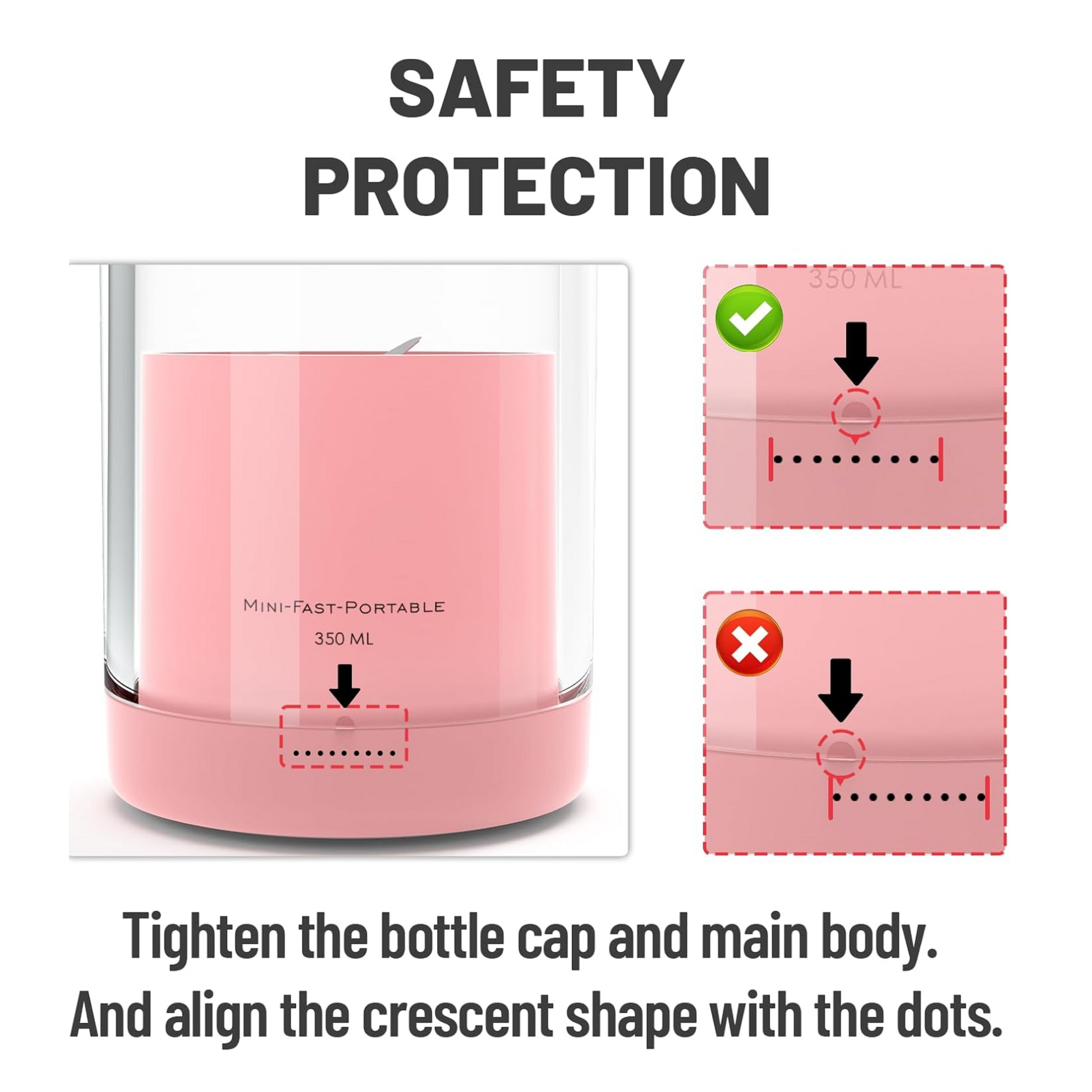 Food-grade stainless steel blades, one-touch operation, and smooth blending in a portable 350 ml jar.